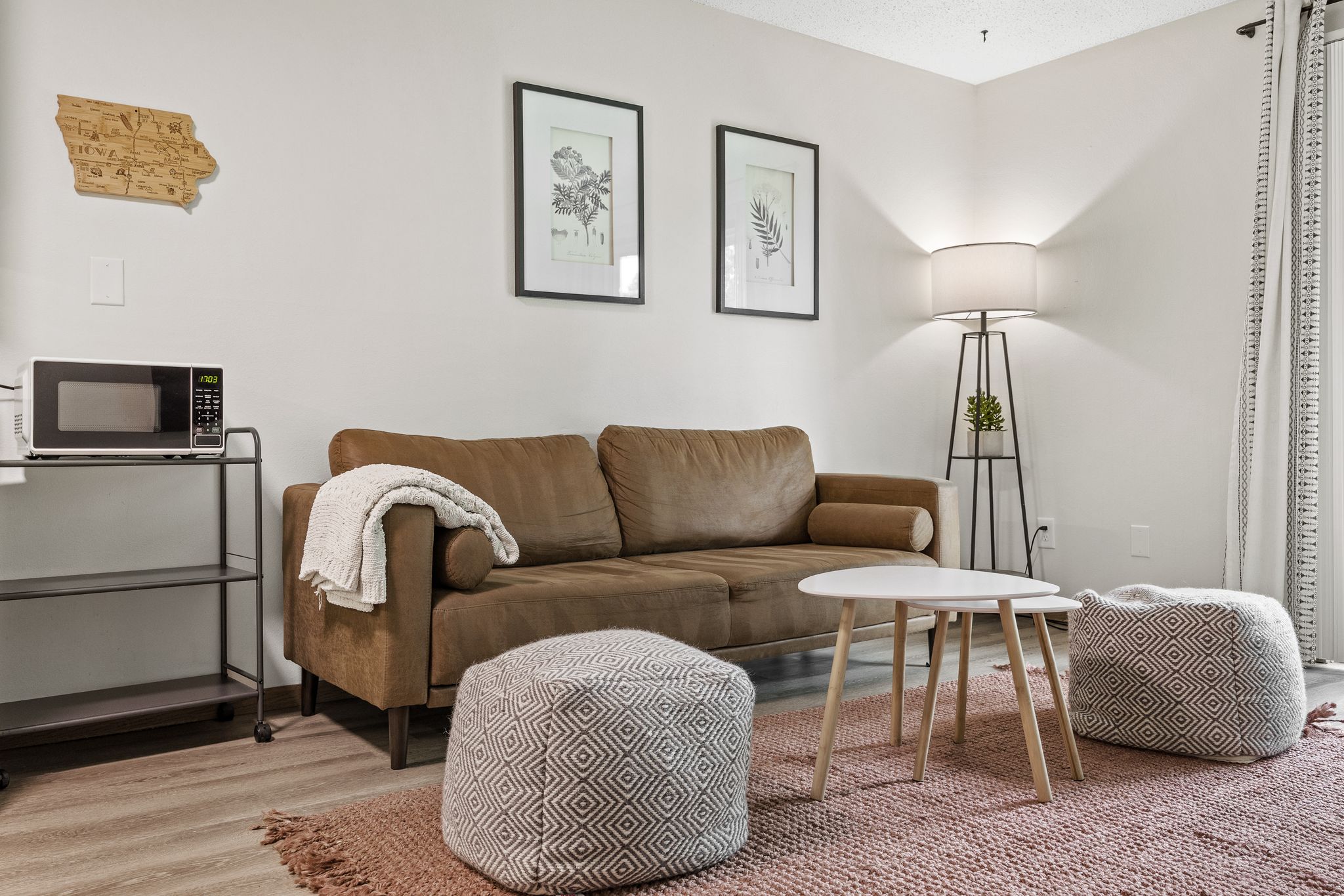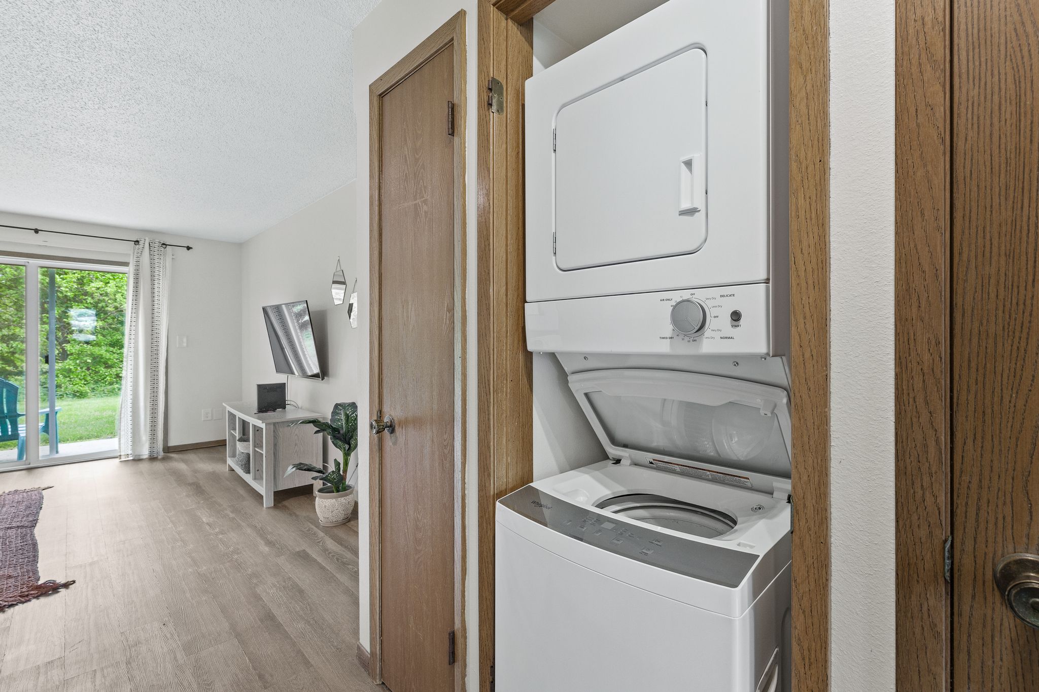 This clean and quiet 1-bedroom, 1-bath condo is ideal for traveling nurses or professionals seeking a comfortable short-term home in Iowa City. The entire unit is yours, offering privacy and all the essentials for an easy, turnkey stay. The space is fully furnished and includes linens, towels, and cleaning supplies, a fully equipped kitchen with cookware and utensils, fast Wi-Fi, a smart TV with Firestick, and a brand-new in-unit washer and dryer. Blackout curtains ensure restful sleep, and a scenic walking trail and pond are just outside the back patio. Located in a safe, walkable neighborhood — Fareway grocery store, Java House coffee, Coaches Corner Bar & Grill, and Thai Noodle House are all just down the street. University of Iowa Hospitals & Clinics, Carver-Hawkeye Arena, and Kinnick Stadium are within 2 miles. All utilities are included.